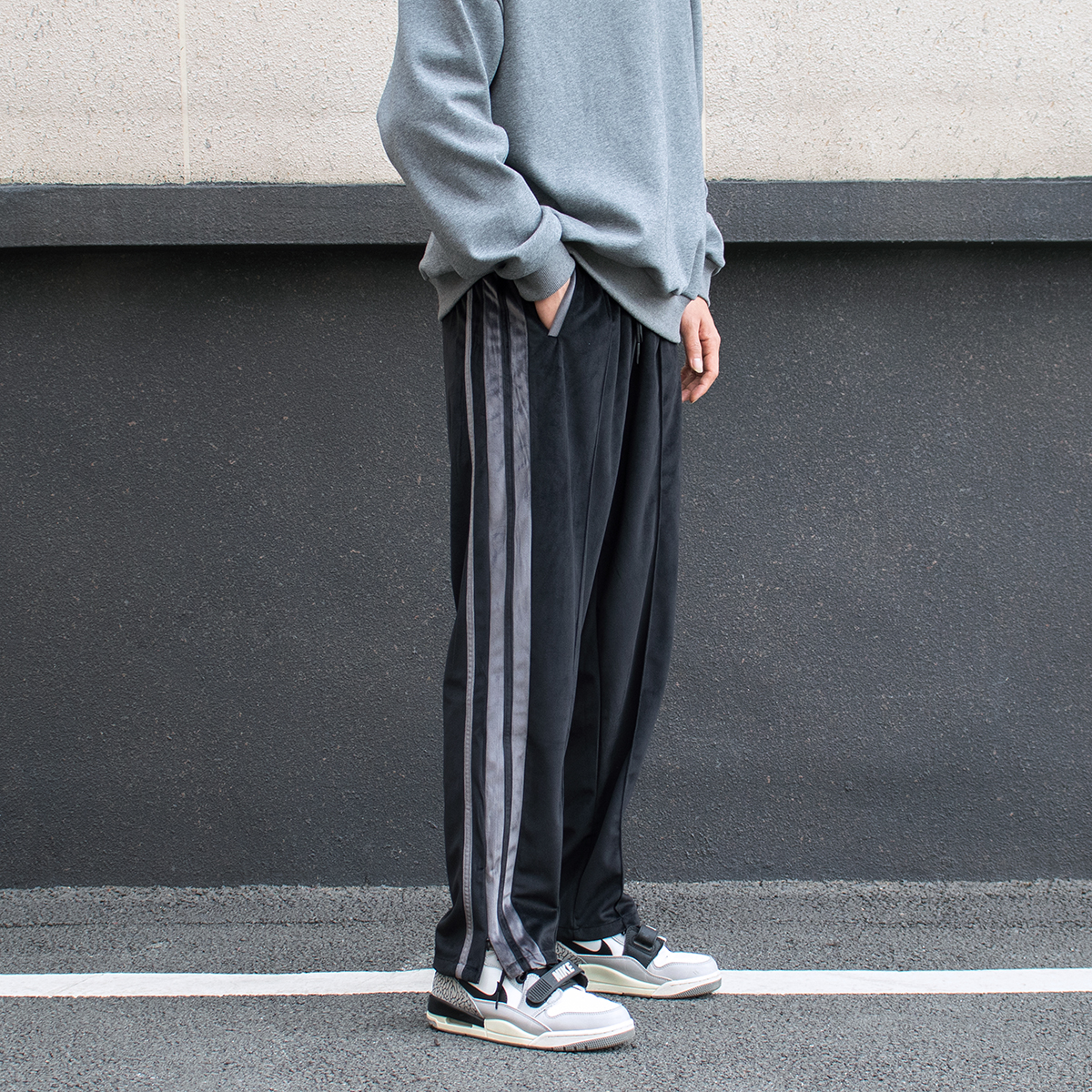 高腰的设计,拉长腿部线条,显瘦效果很好,高腰的版型,很显高挑,修身的剪裁,修饰腿部曲线,上身很有范。