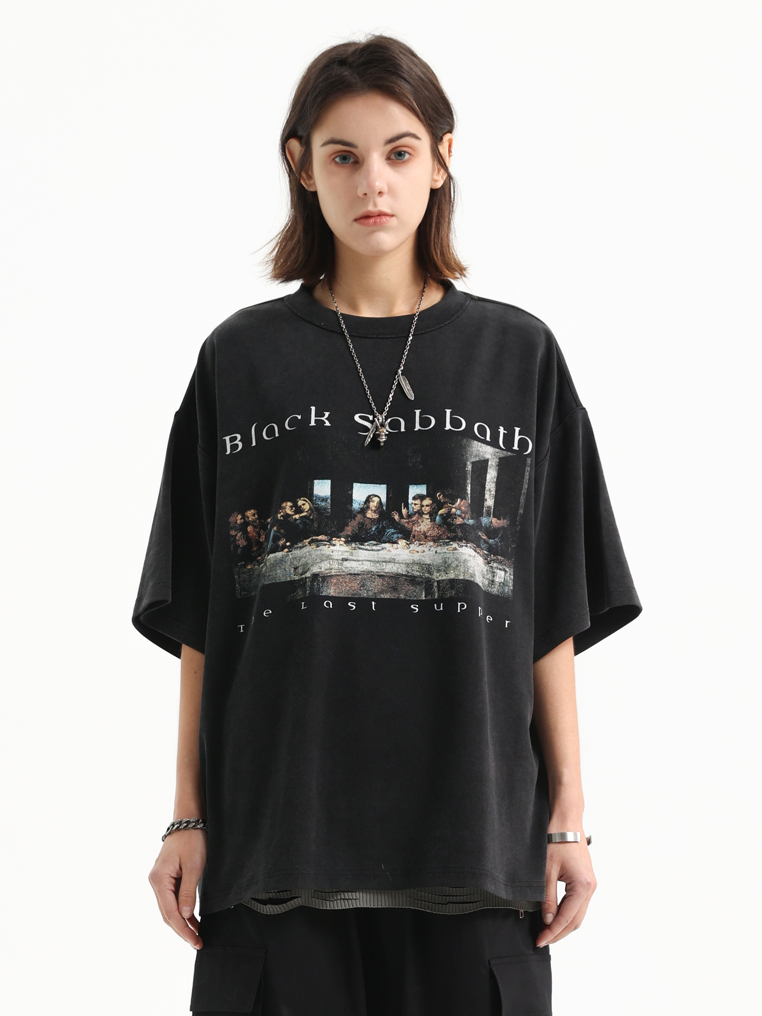 宽松款式的一款T恤衫,前幅加入的个性字母印花图案,上身尽显嘻哈风格。