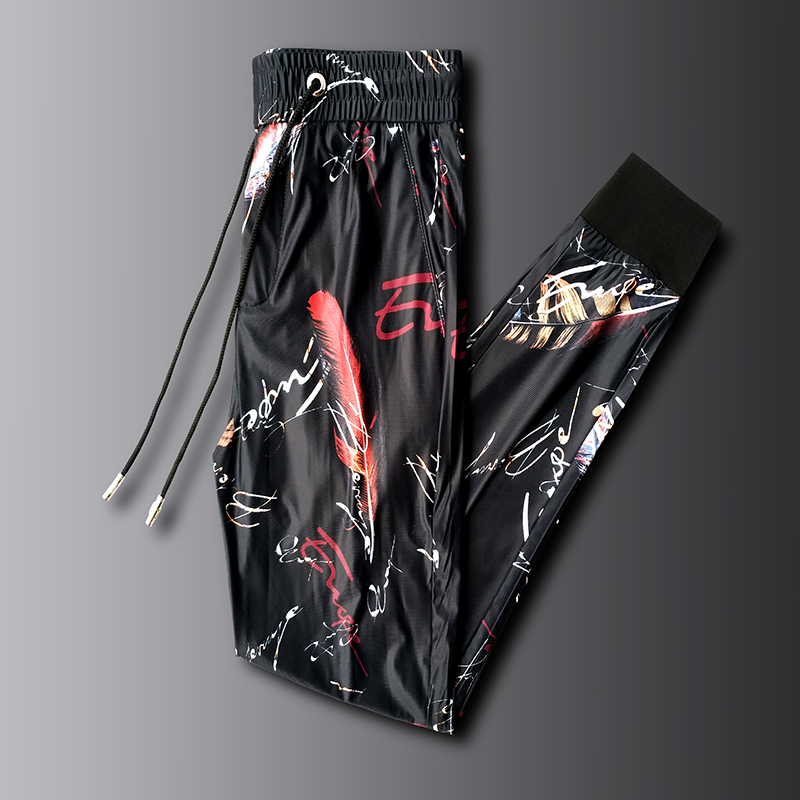 冰丝面料,触感舒适,休闲时尚,宽松裤型,不挑身材,休闲长裤,修饰腿部线条,薄款设计,穿着舒适透气。