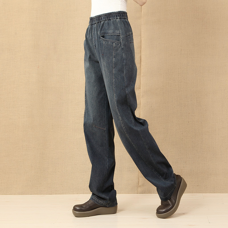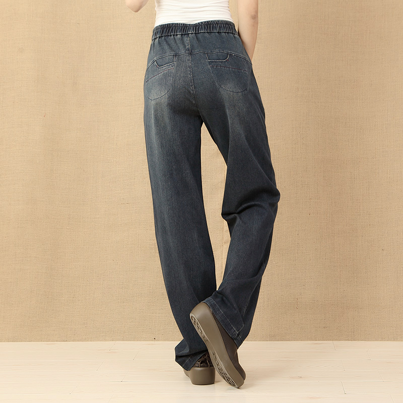 高腰设计,拉长身材比例。高腰牛仔裤,显瘦显腿长。直筒裤型,修饰腿部线条。