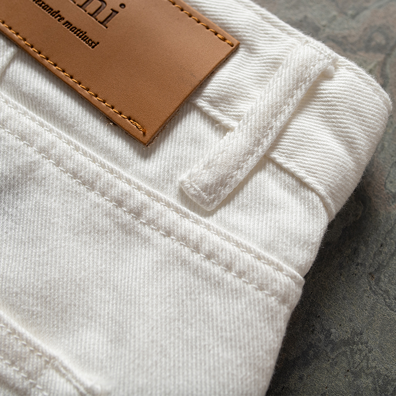 复古牛仔裤,时尚感十足,牛仔面料,穿着舒适透气,白色的裤子,简约大方,修身版型,勾勒曼妙身姿。