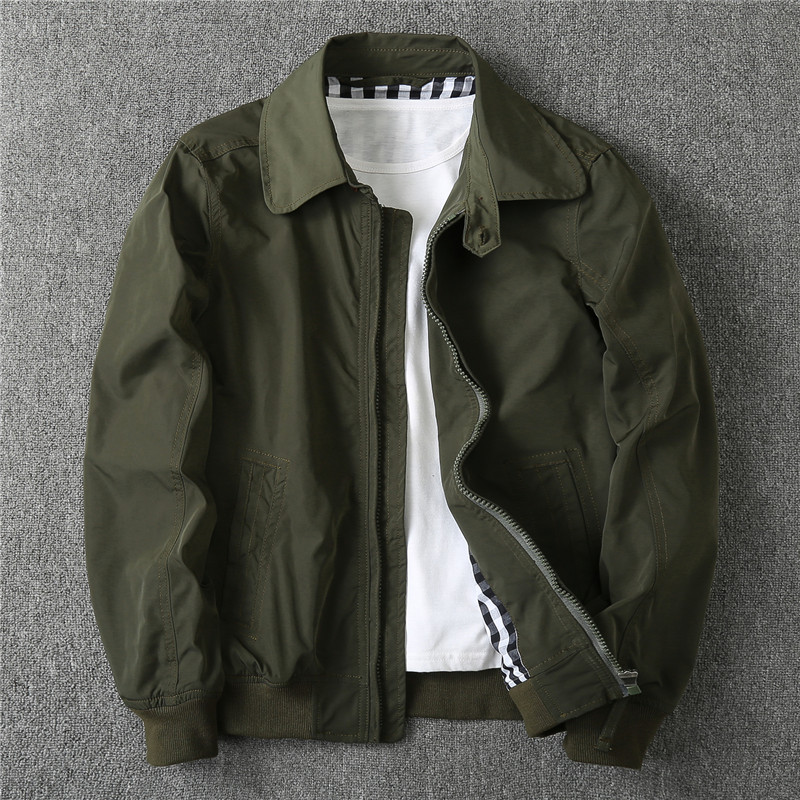 这件帅气的风衣外套,防风效果较好,经典的翻驳领设计更显时尚。采用经典棒球领设计,凸显时尚青春之美。