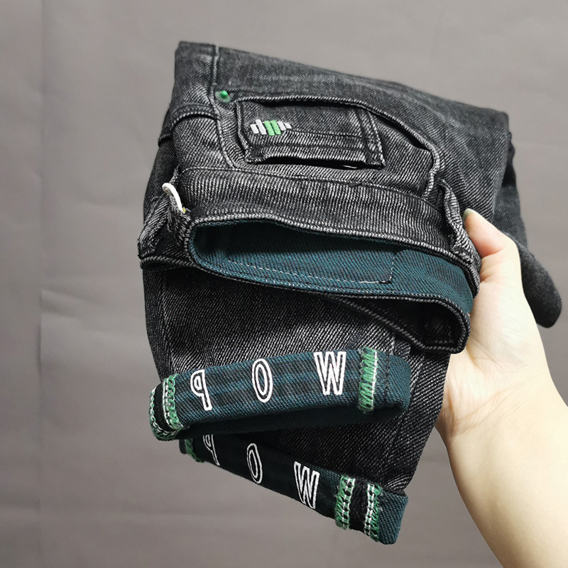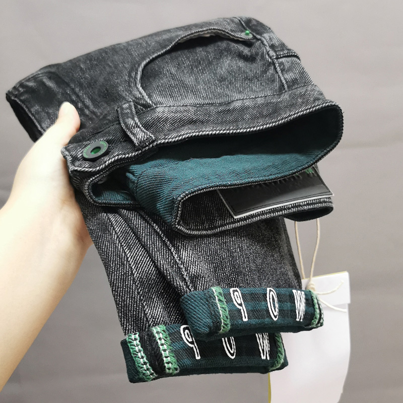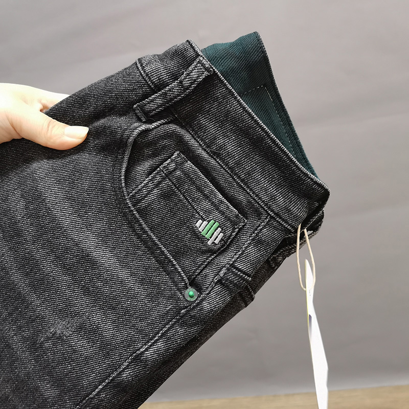 弹力裤腰,修饰腿部线条,优质棉牛仔面料,穿着舒适,个性贴布设计,时尚潮流,直筒裤,穿着舒适不紧绷,简约的直筒版型,修身显瘦。