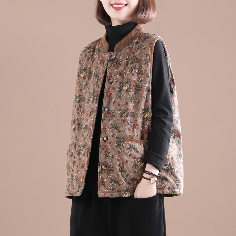 上了年纪的她喜欢宽松款的,这件马甲正和她意。面料、做工都很好。