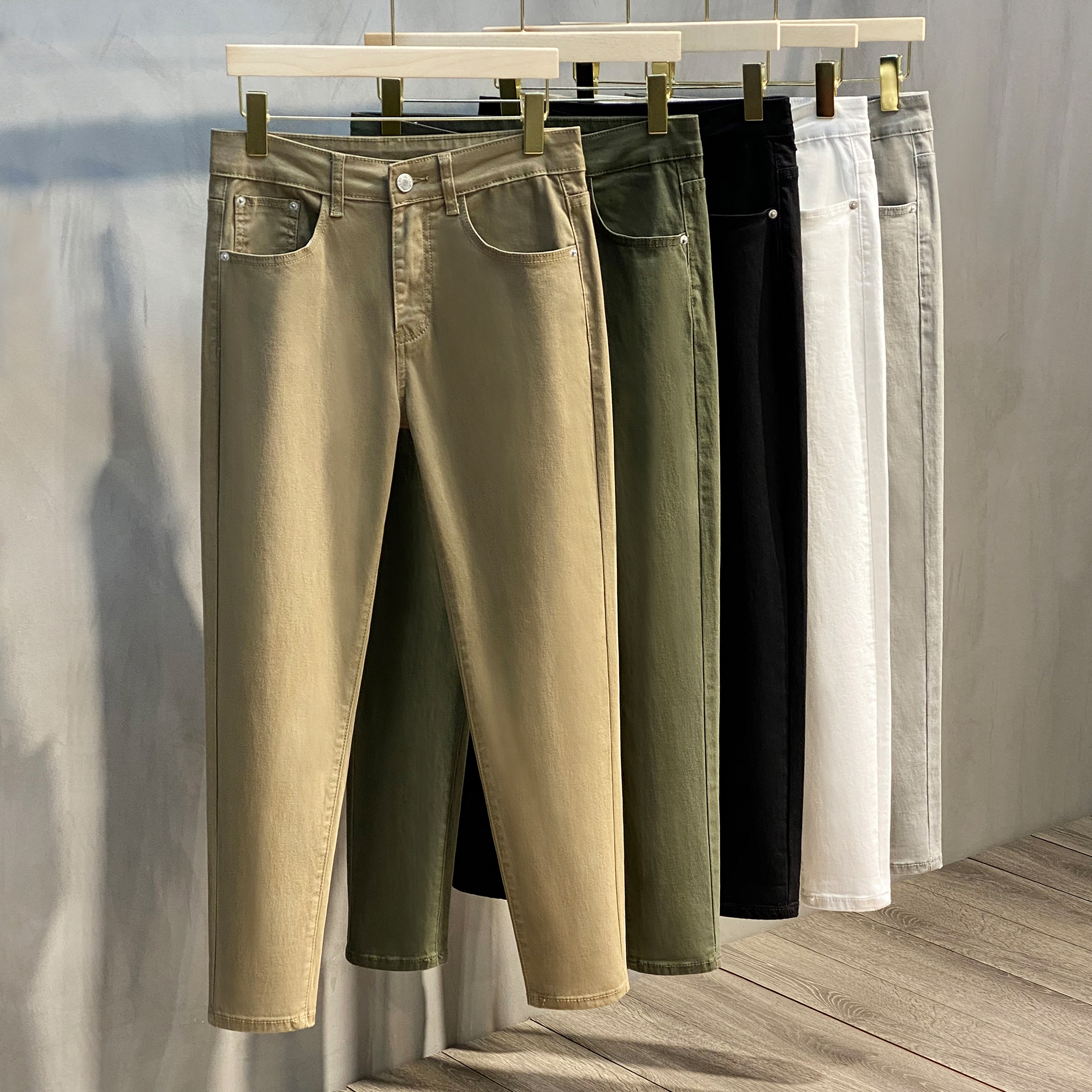 小脚裤版型,修饰腿部线条。时尚直筒版型,穿着更舒适。简约的款式,时尚又百搭。