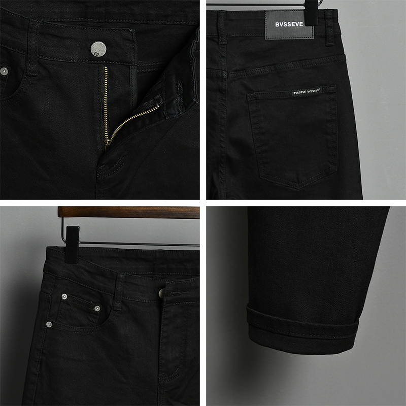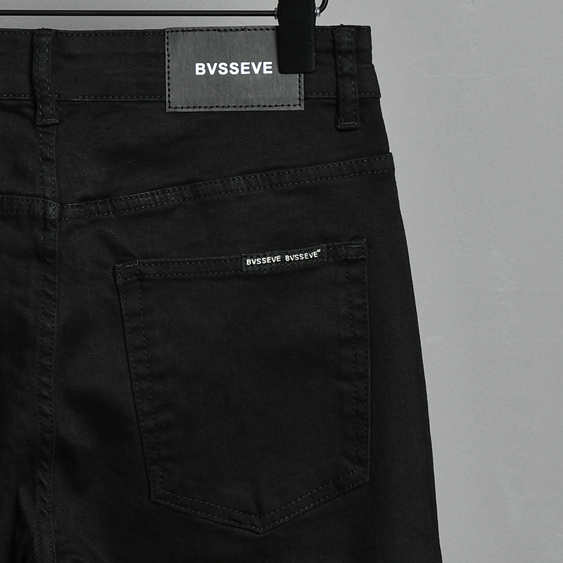 具有简约百搭性能的黑色修身裤,加入牛仔的面料,呈现出一股浓郁的复古风情。