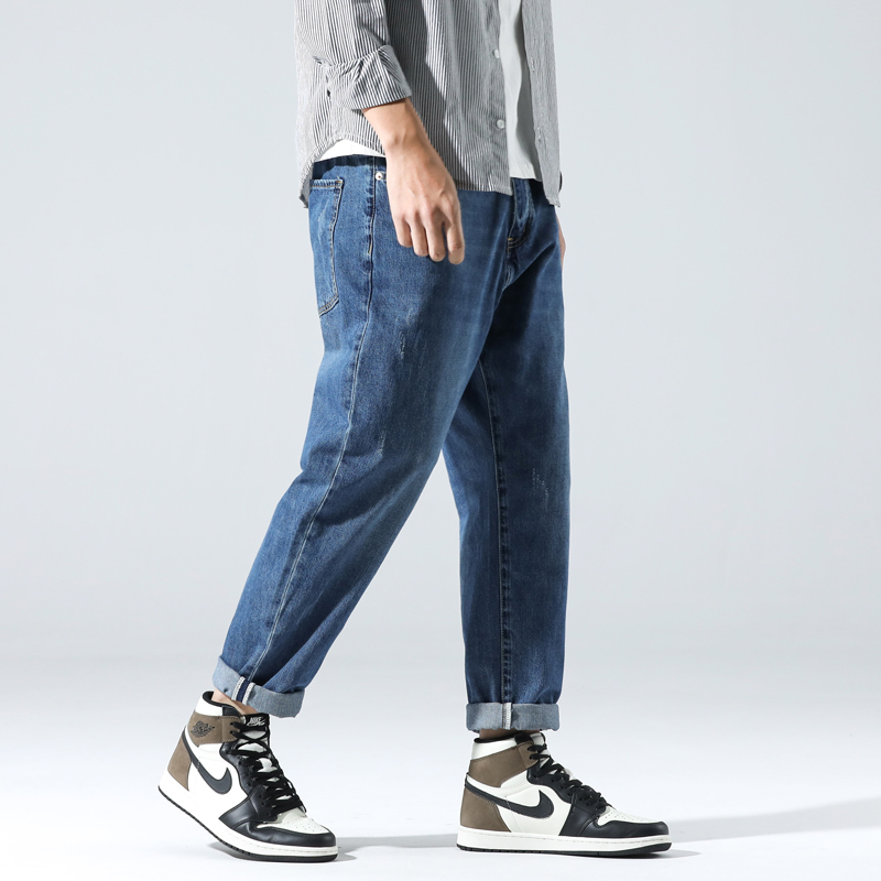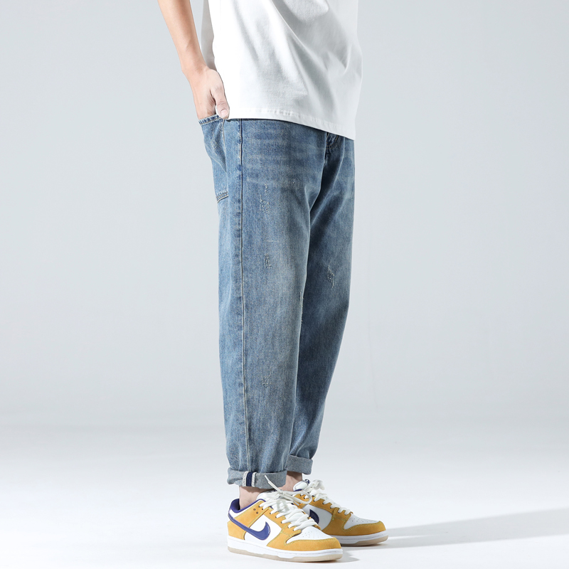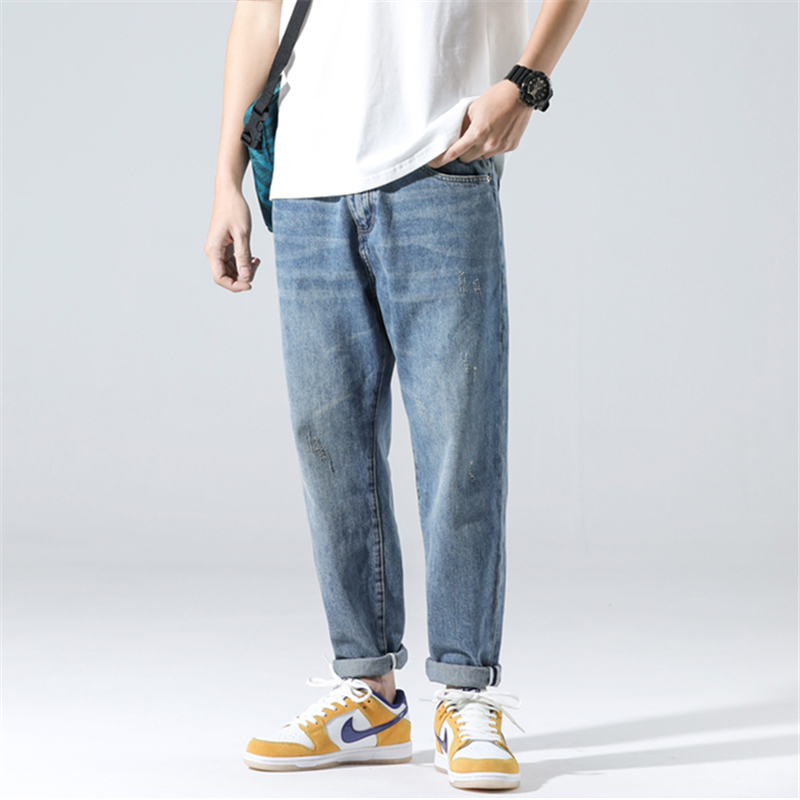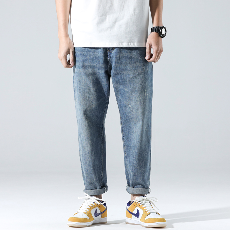 帅气复古,彰显时尚魅力,直筒裤型,修饰腿部线条,浅色牛仔裤,清新又自然,棉质材质,穿着舒适透气。