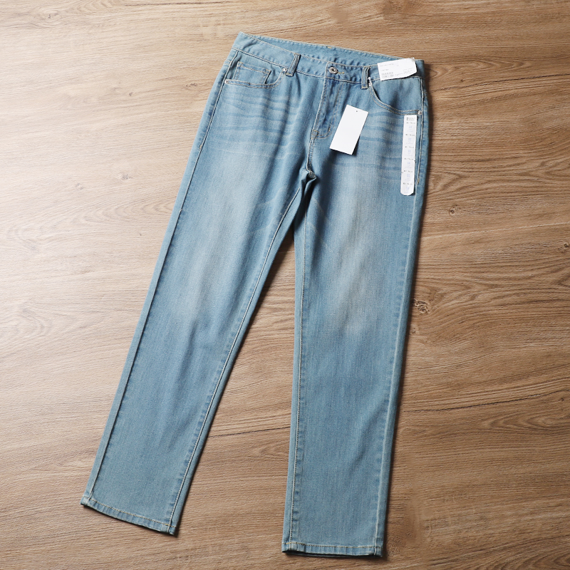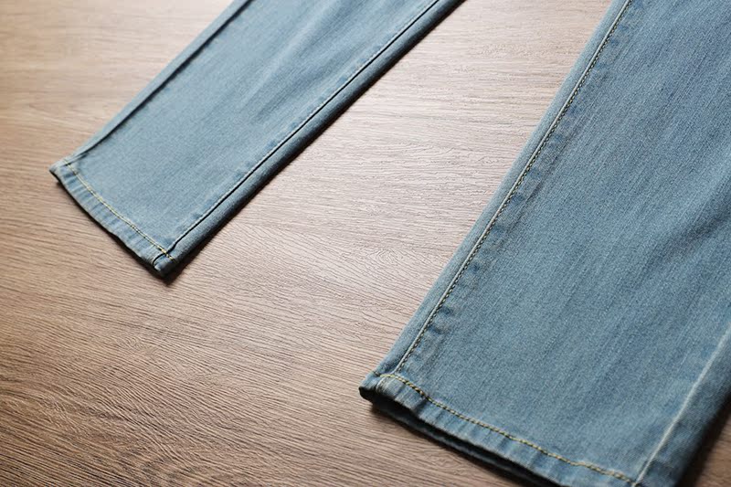 高腰设计,拉长身材比例。高腰牛仔裤,显瘦显腿长。直筒裤型,修饰腿部线条。