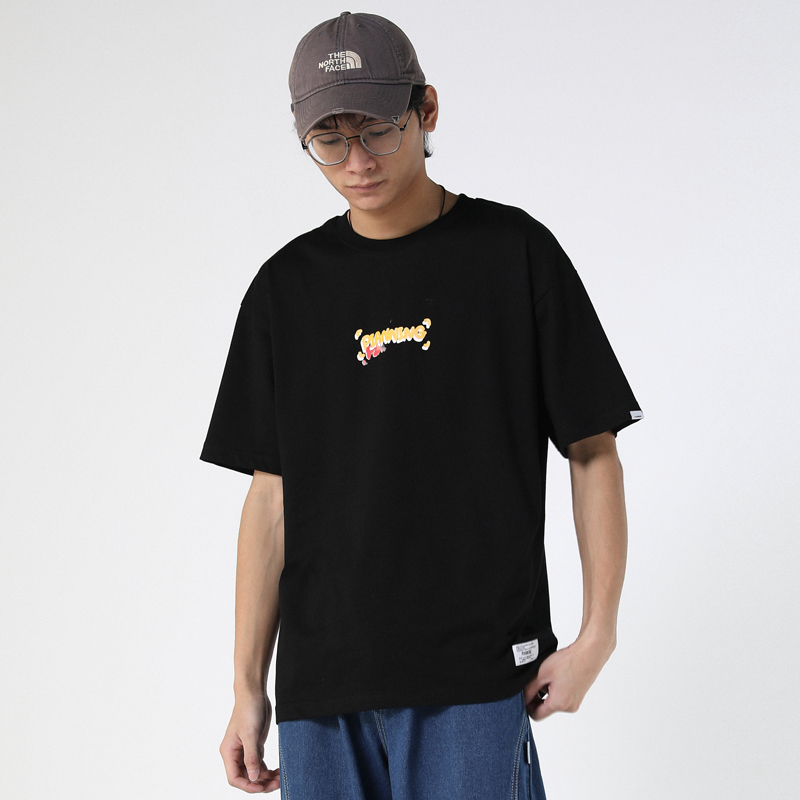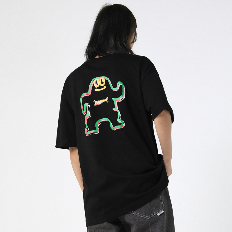 宽松又休闲的圆领短袖T恤,加上卡通造型图案,让这款圆领的设计时尚潮流,穿上身更具有百搭的作用。