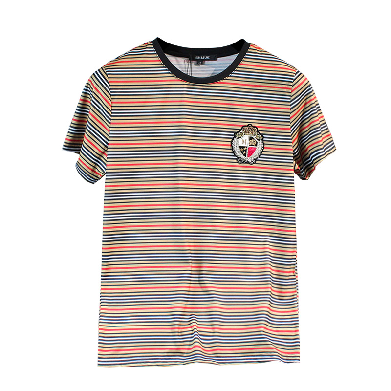 这款休闲t恤,圆领的版型,修饰脖颈线条,穿在身上展现出一种随性的感觉。