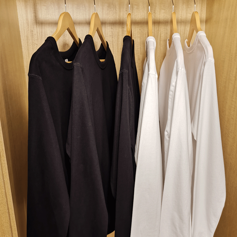 简约的高腰设计,搭配上修身的版型,上身显瘦又显高。