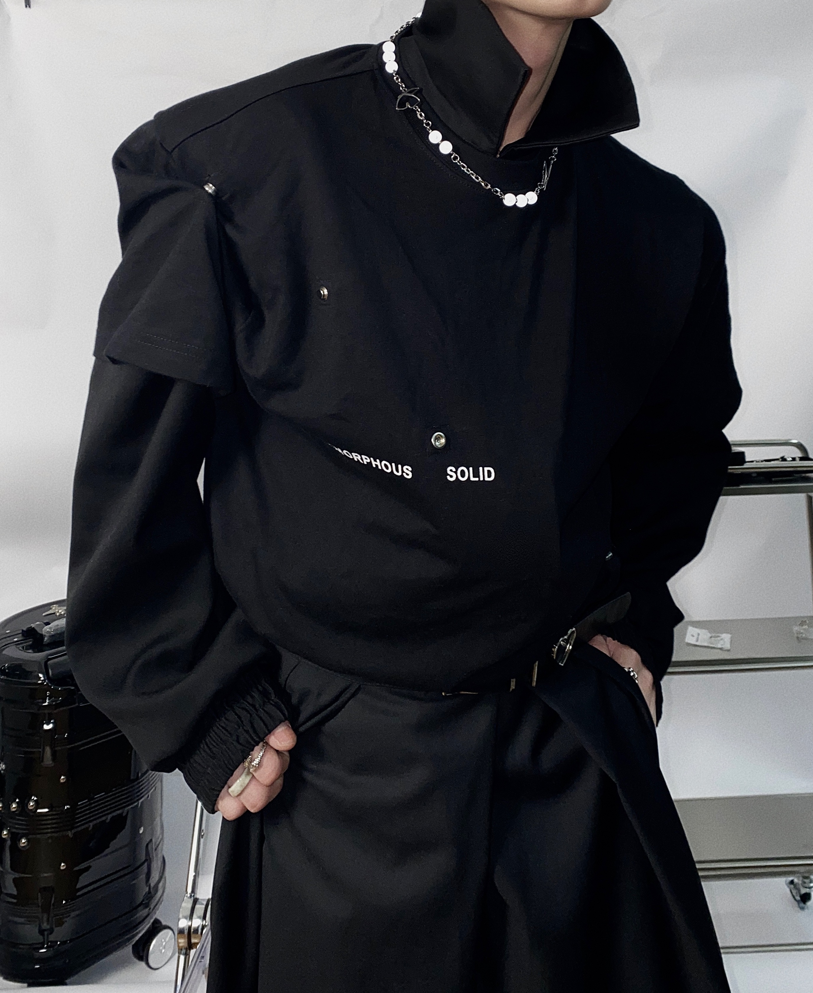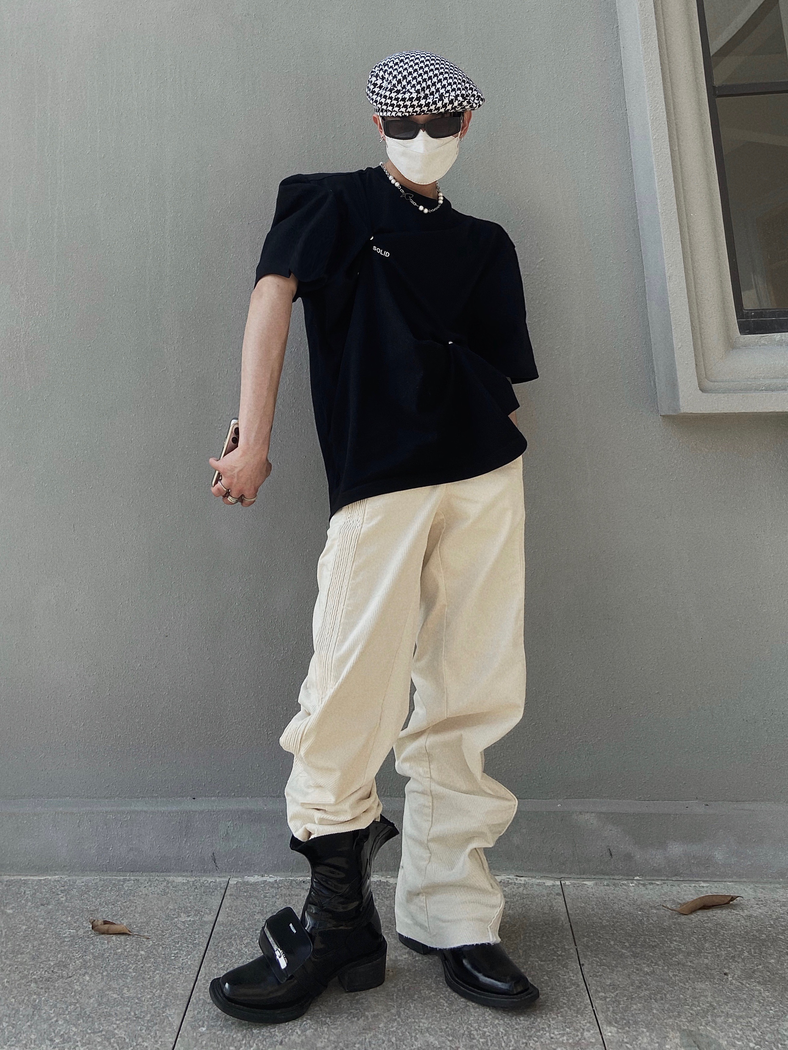 简约的高腰设计,搭配上修身的版型,上身显瘦又显高。