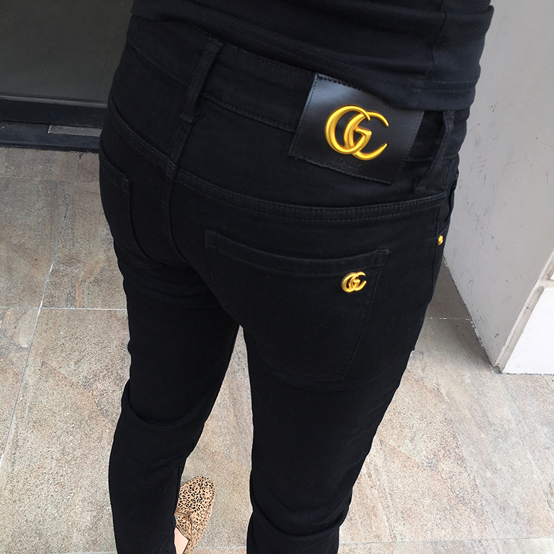 这款牛仔裤的设计很有特色,高腰的版型,很好的修饰了身材比例,显瘦效果很棒,搭配一件T恤,就能轻松穿出时尚感。