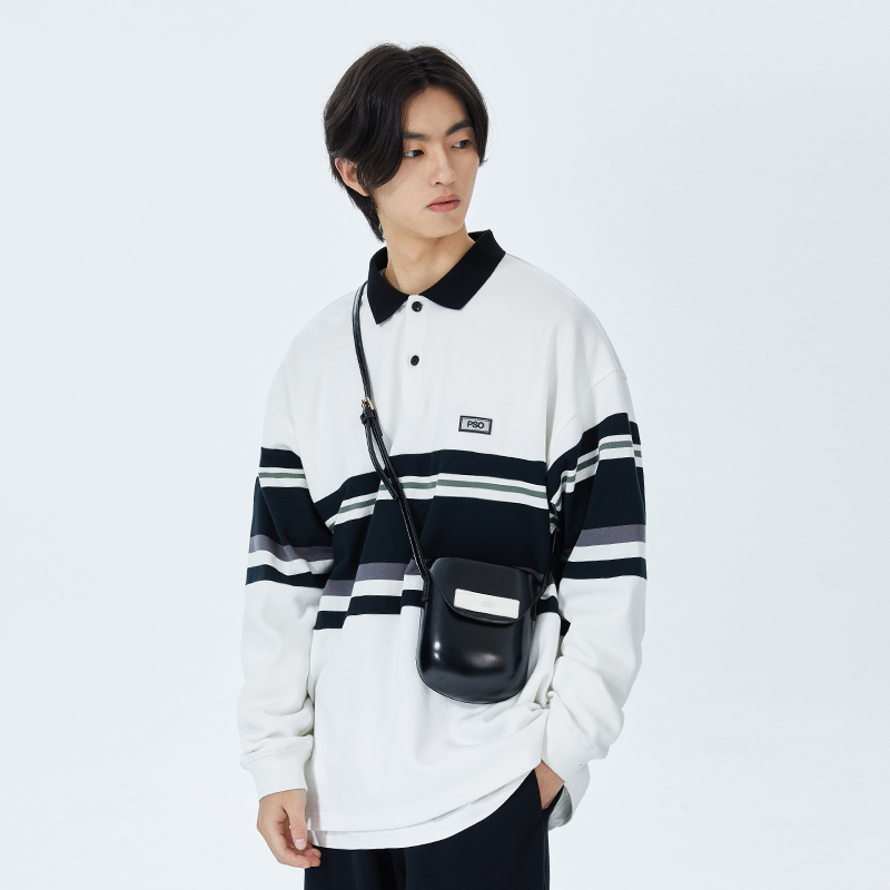 衬衣翻领设计,凸显男士颈部线条。条纹元素,尽显年轻时尚态度。棉质材质,舒适透气。