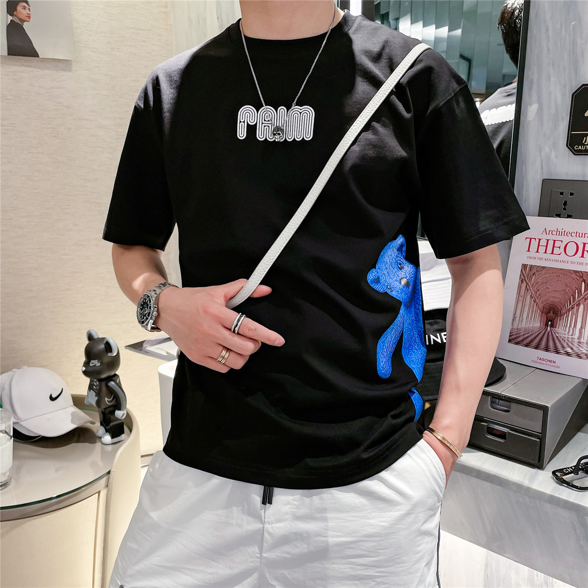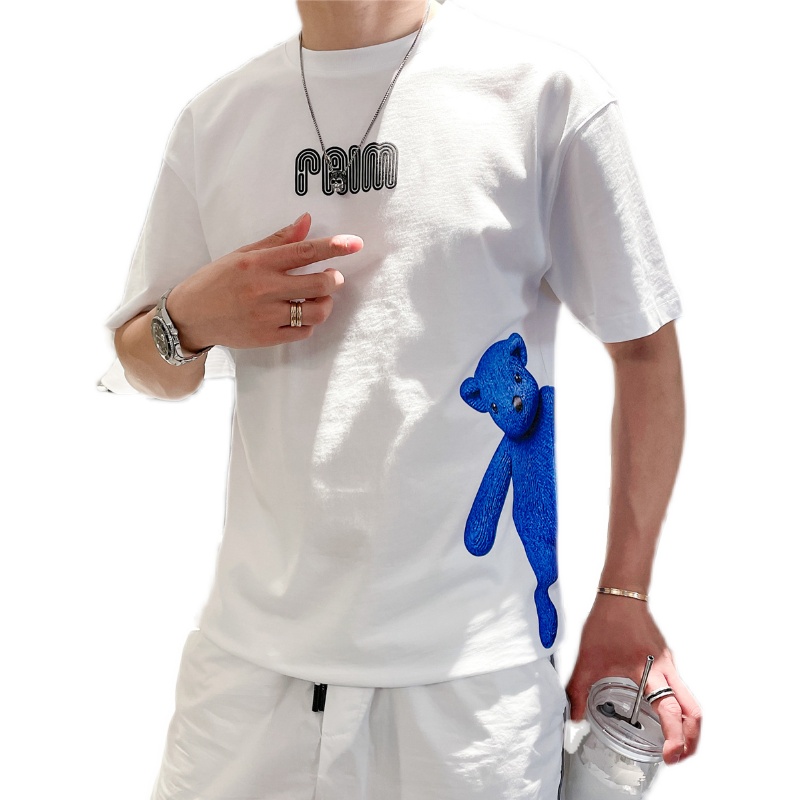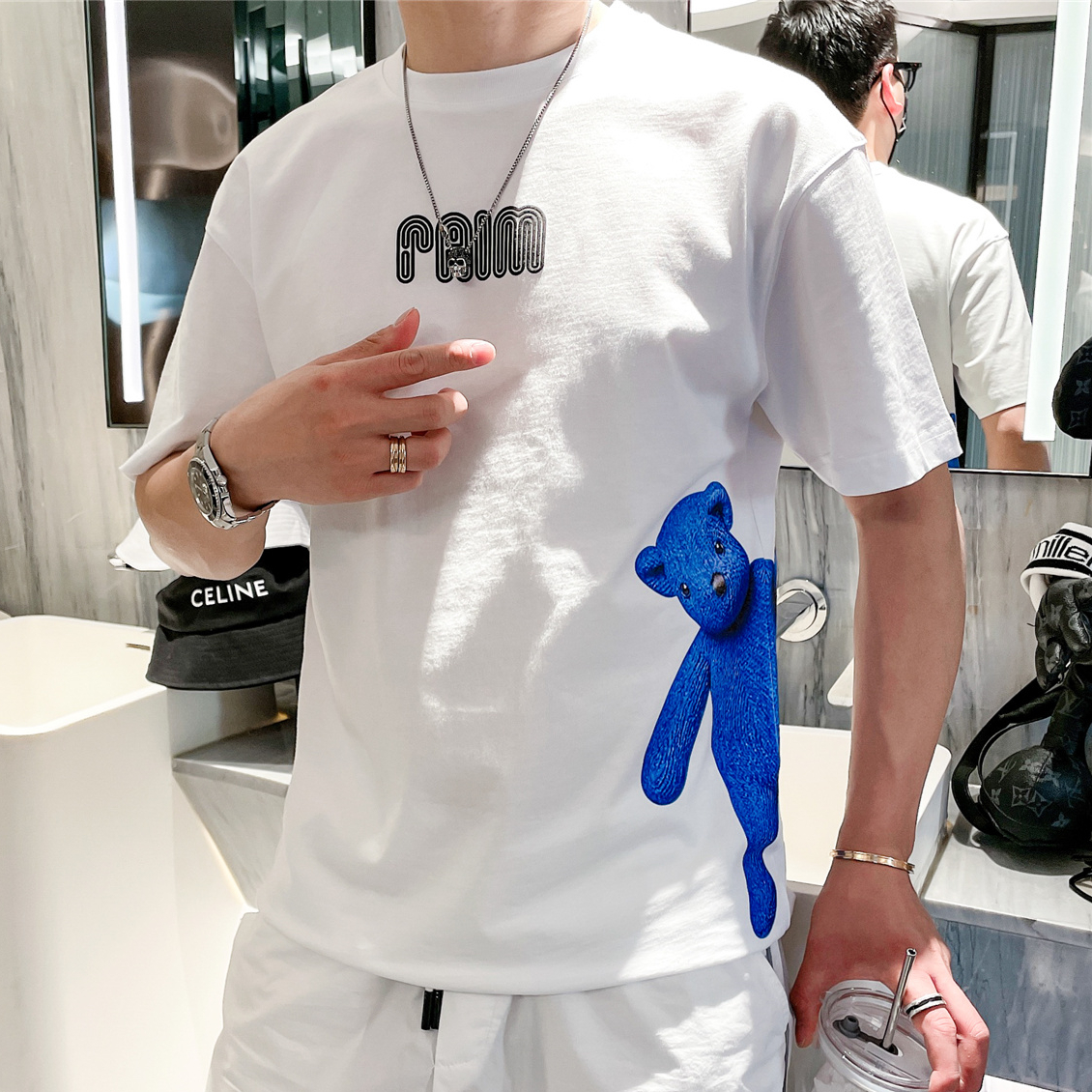 宽松T恤,修饰身材曲线,小熊印花,充满童真趣味,白色的设计,经典又百搭,简约的版型,潮流感十足,黑色的色调,简约又百搭。
