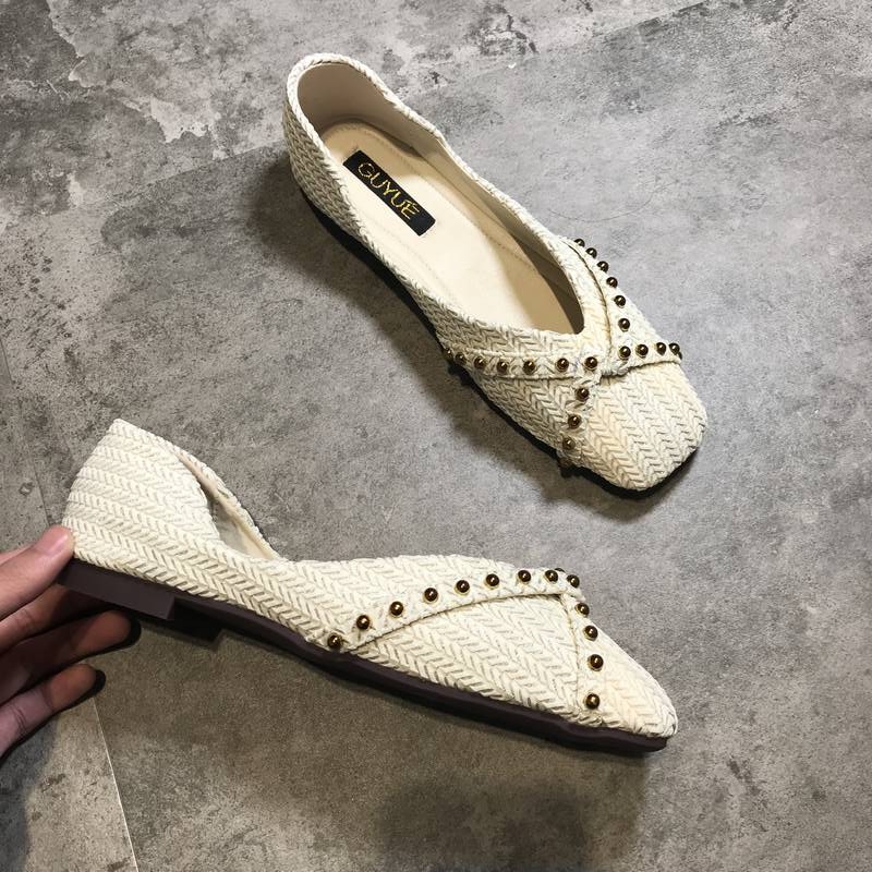 时尚复古方头设计,尽显英伦风范。优雅的平底鞋楦型设计,走路不累脚。