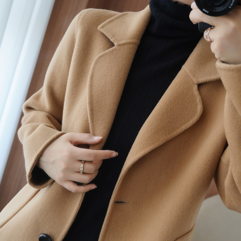 双面羊绒大衣版型好看,面料柔软舒适抗皱。穿上修身漂亮