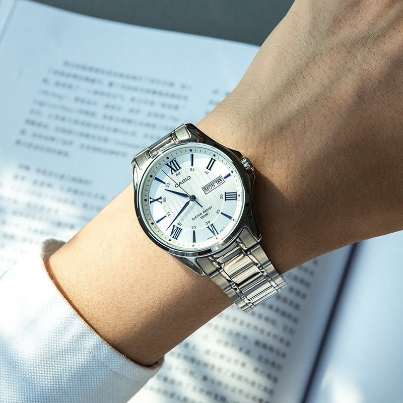 采用人工合成蓝宝石镜面表镜,结实耐用。圆形金属表盘,简约优雅,让你的魅力瞬间展现。