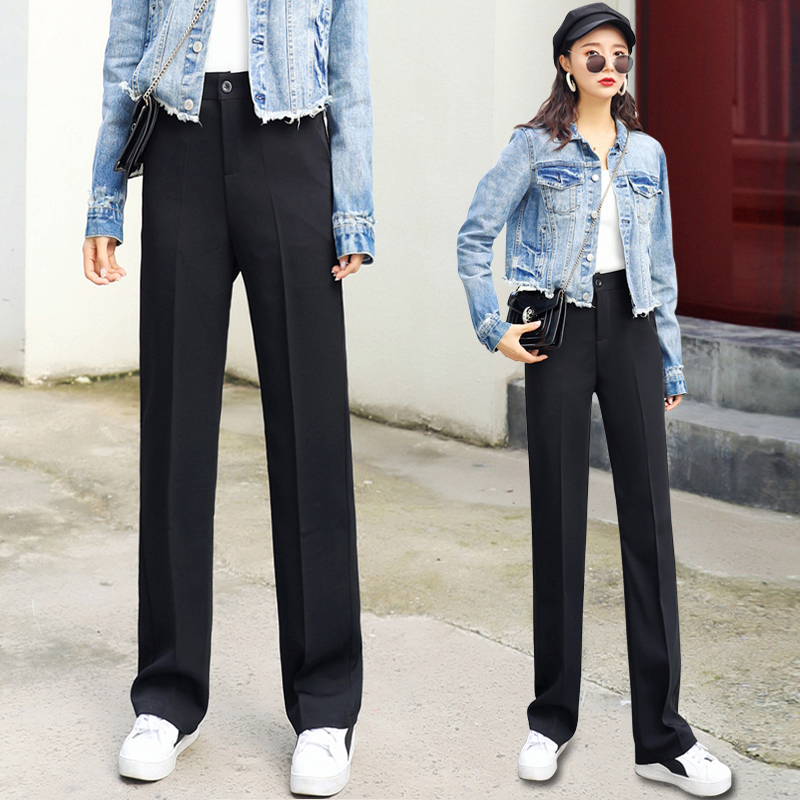 高腰设计,拉长身材比例。高腰牛仔裤,显瘦显腿长。直筒裤型,修饰腿部线条。