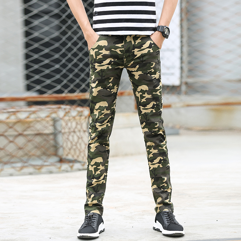 牛仔的工装裤,宽松的版型,穿着舒适自在,个性的迷彩图案,丰富视觉效果,尽显个性,束脚的设计,拉长腿部线条。