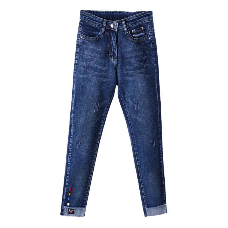 高腰设计,拉长身材比例。高腰牛仔裤,显瘦显腿长。直筒裤型,修饰腿部线条。