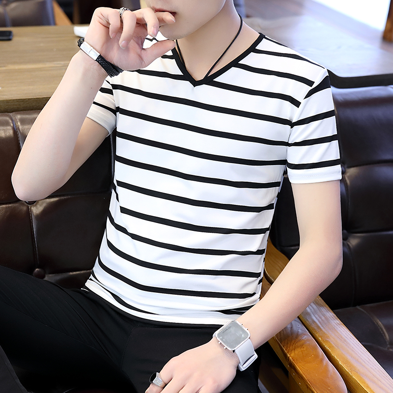 撞色设计,潮流感十足,修身打底衫,显瘦显高挑,V领设计,修饰脖颈曲线,小尖领设计,彰显优雅气质,经典黑色,时尚百搭。