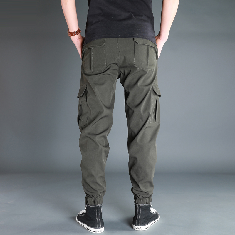 工装裤版型,休闲感十足,长裤设计,拉长腿部线条,松紧裤,穿着舒适不紧绷。