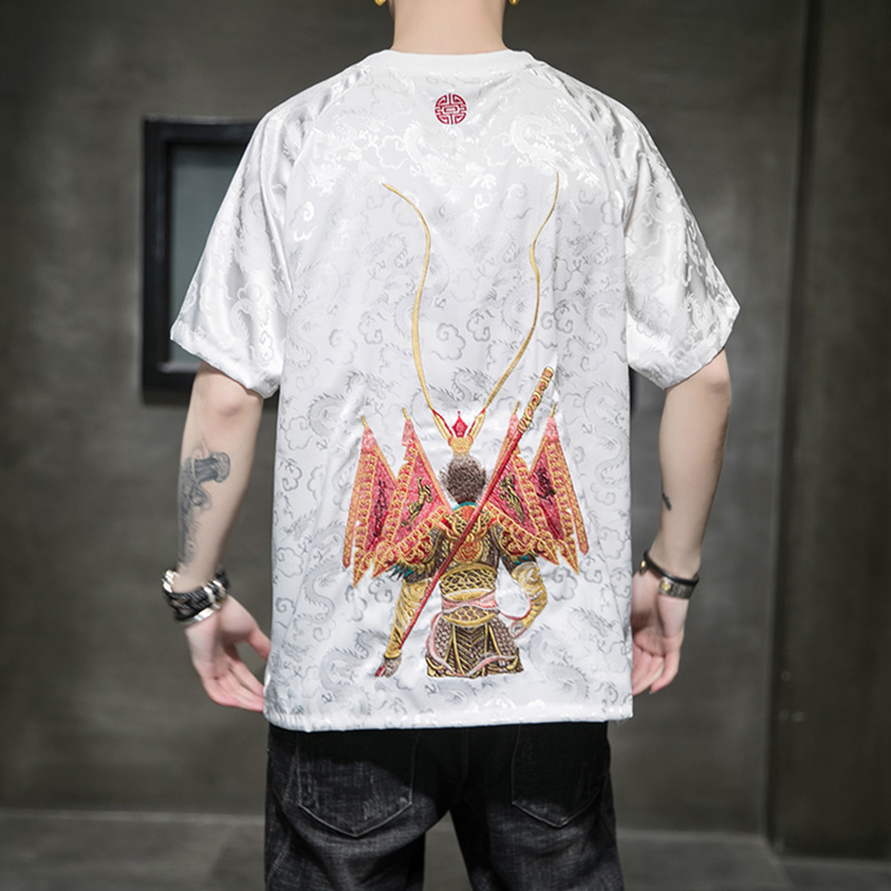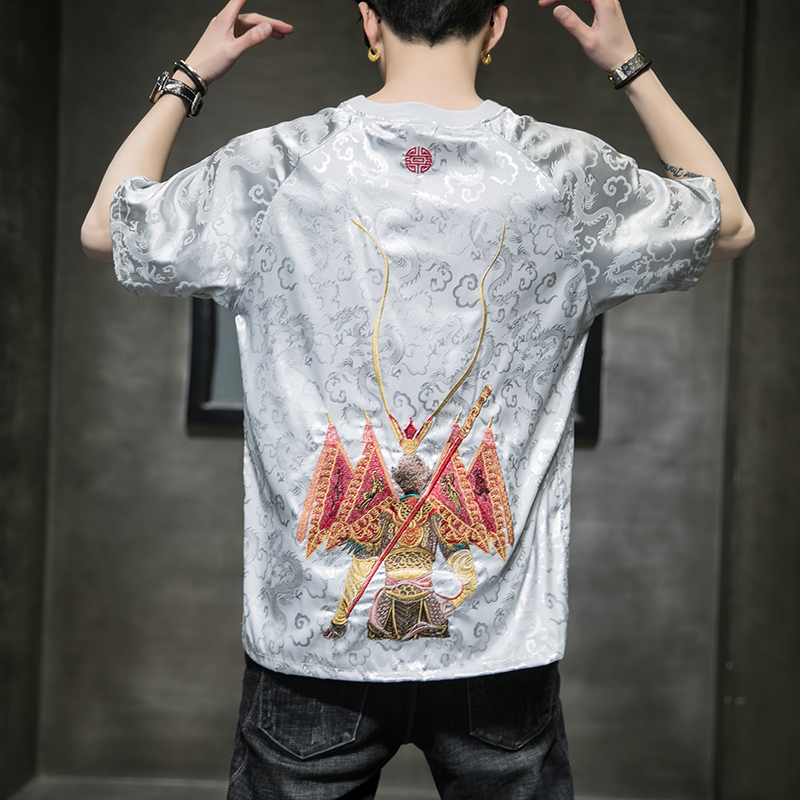 来自冰丝的一款T恤,轻薄的冰丝面料,轻薄舒适,夏日也可以穿,衣身的绣花设计,个性的设计,简约时尚,宽松的版型,上身舒适自在。