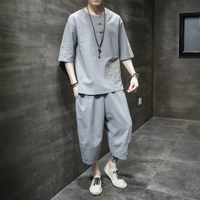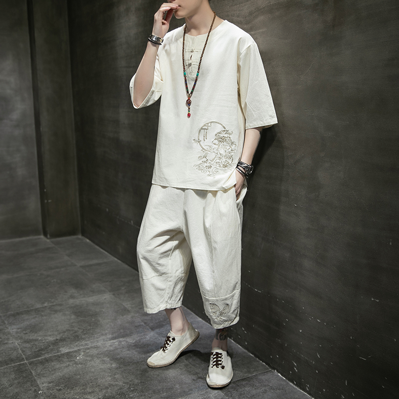 宽松版型,不挑身材穿着,气质V领,修饰脖颈曲线,小碎花图案,清新淡雅,棉麻材质,穿着舒适透气,汉服设计,时尚感十足,套装设计,穿脱更加方便。