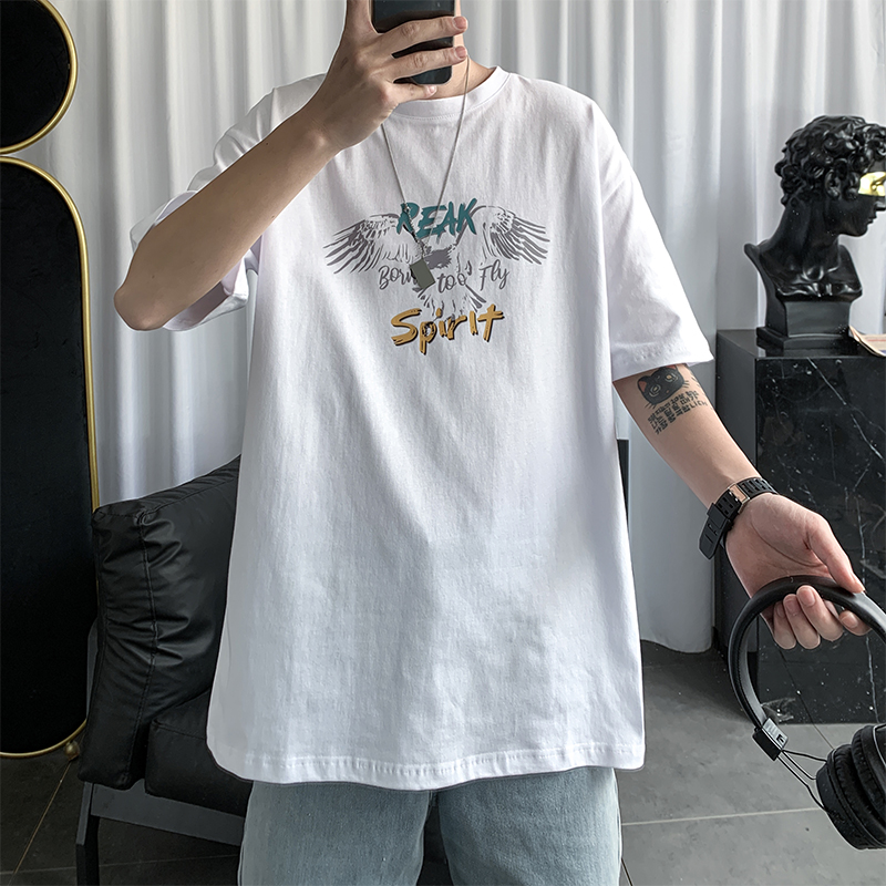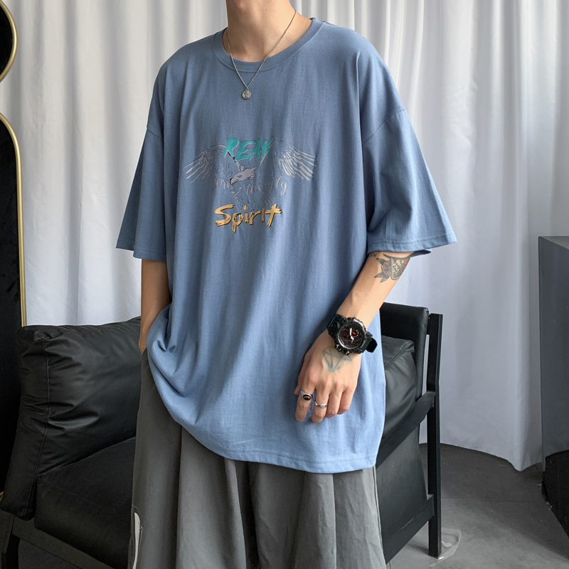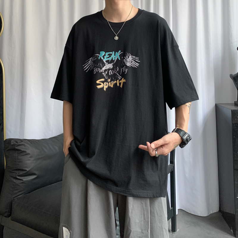 纯棉材质的短袖,穿着舒适又时尚,落肩袖的设计,遮肉显瘦。休闲风十足,时尚又百搭。