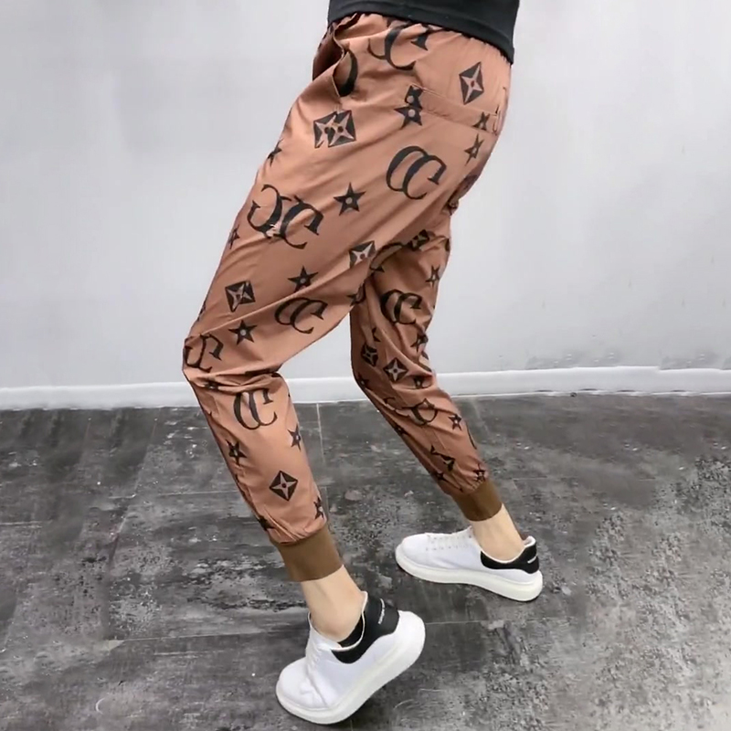 纯棉面料,亲肤舒适透气,小脚款式,潮流时尚,高腰的设计,显瘦效果好,九分款式,露出纤细脚踝。