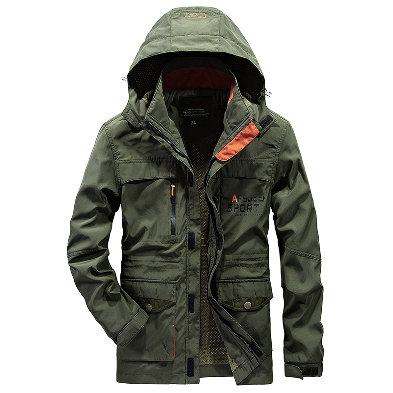 撞色印花设计,个性十足,宽松冲锋衣版型,穿着更舒适,休闲版型,适合各种场合,连帽设计,防风保暖性强,翻领设计,凸显绅士风度。