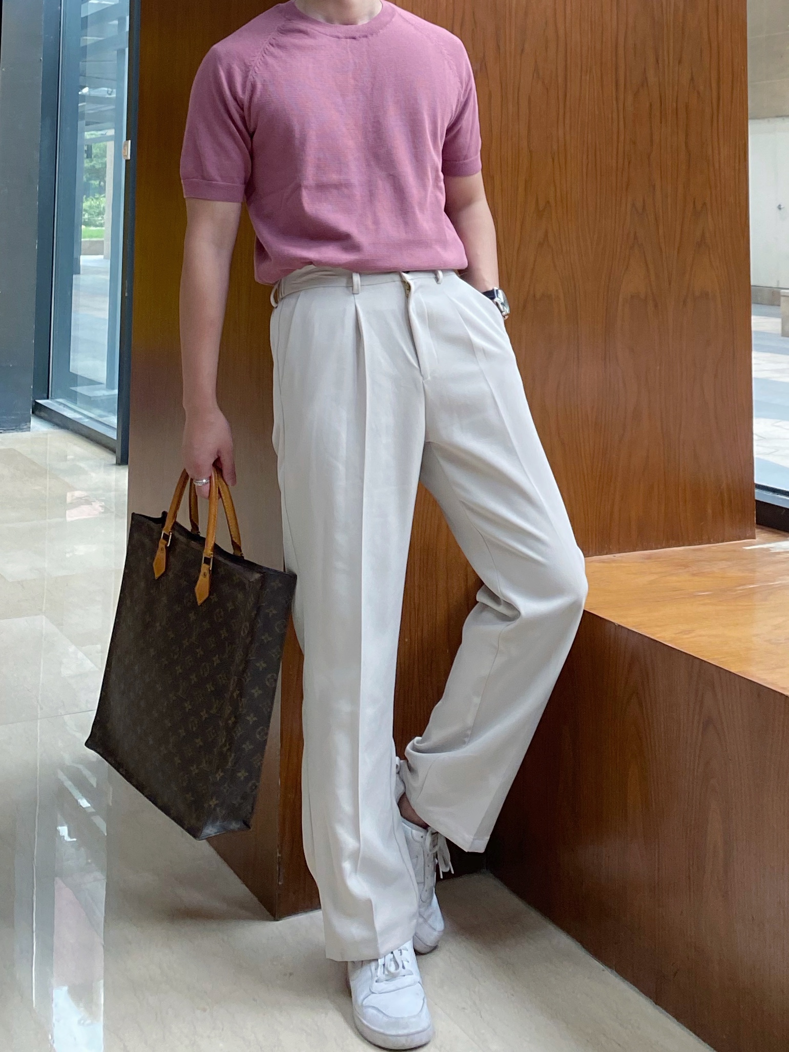简约的高腰设计,搭配上修身的版型,上身显瘦又显高。