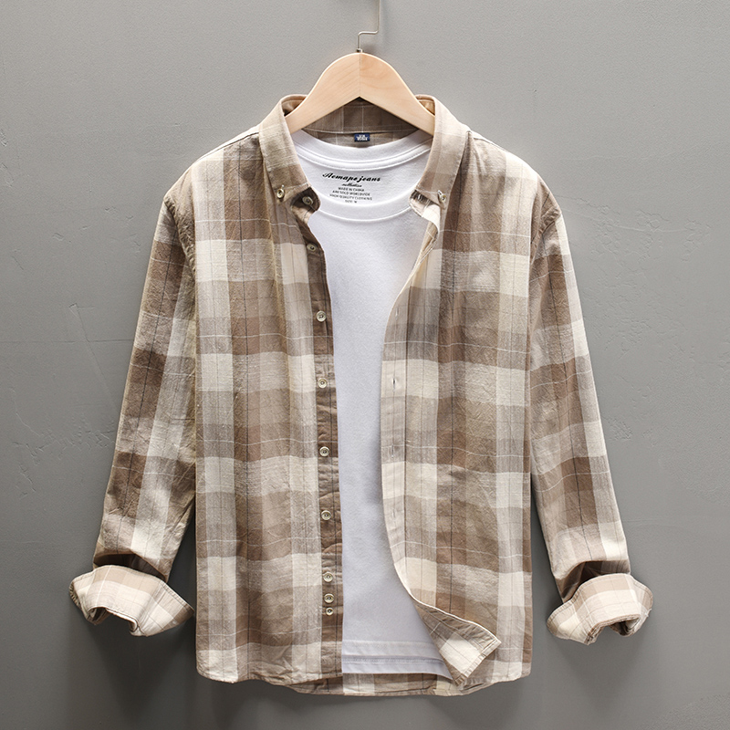 文艺格子休闲衬衫,宽松的版型,纯棉面料,穿着舒适,不挑身材,穿起来很显瘦,很有文艺范。