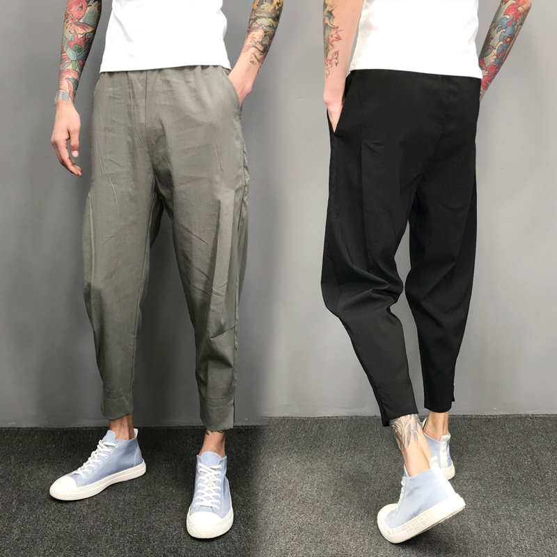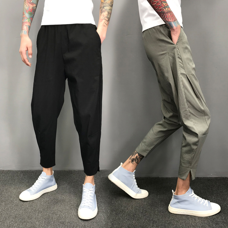 开叉的款式,性感十足,宽松裤子,穿着舒适自在,多种颜色,满足不同需求,九分裤长,露出纤细脚踝。