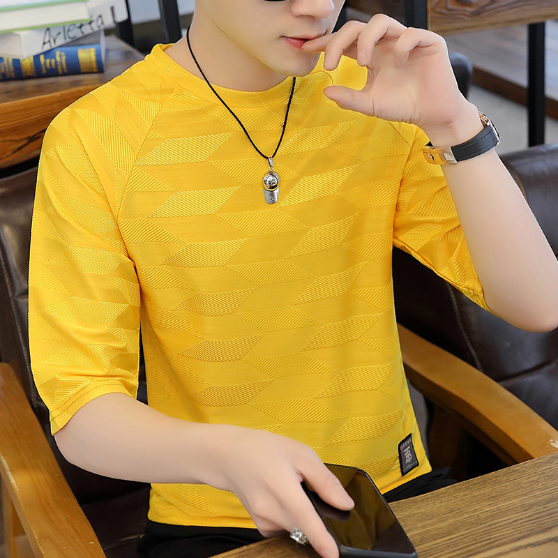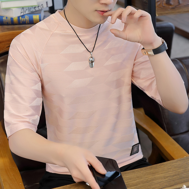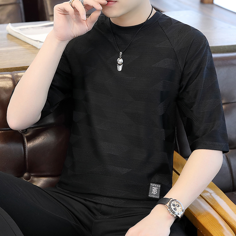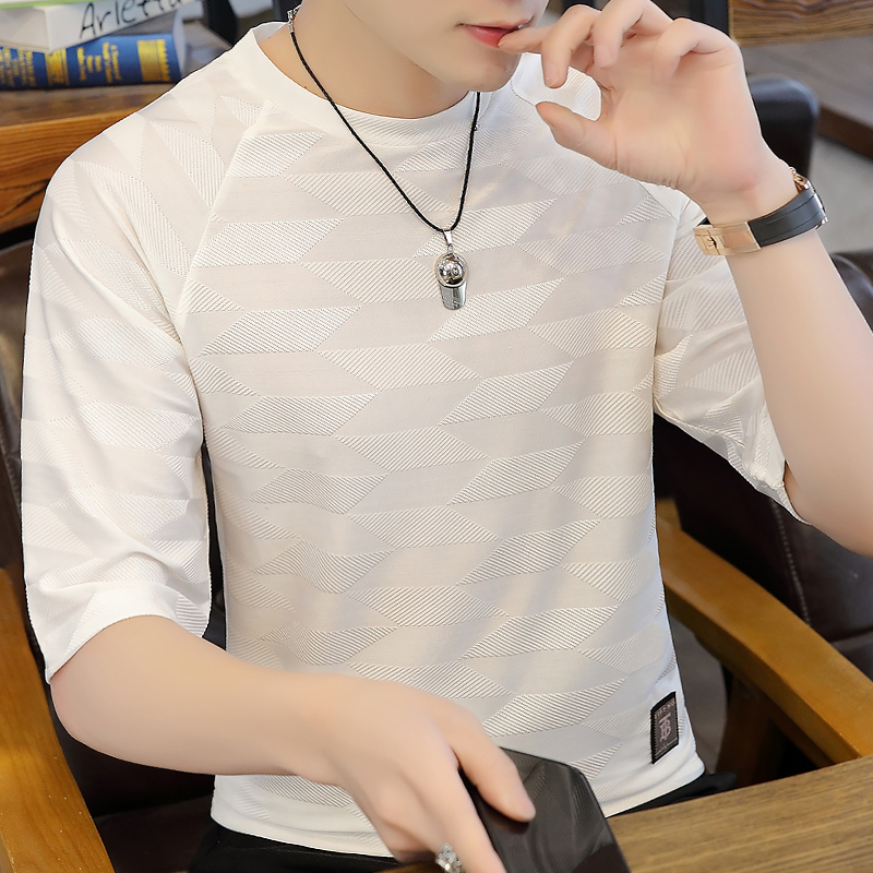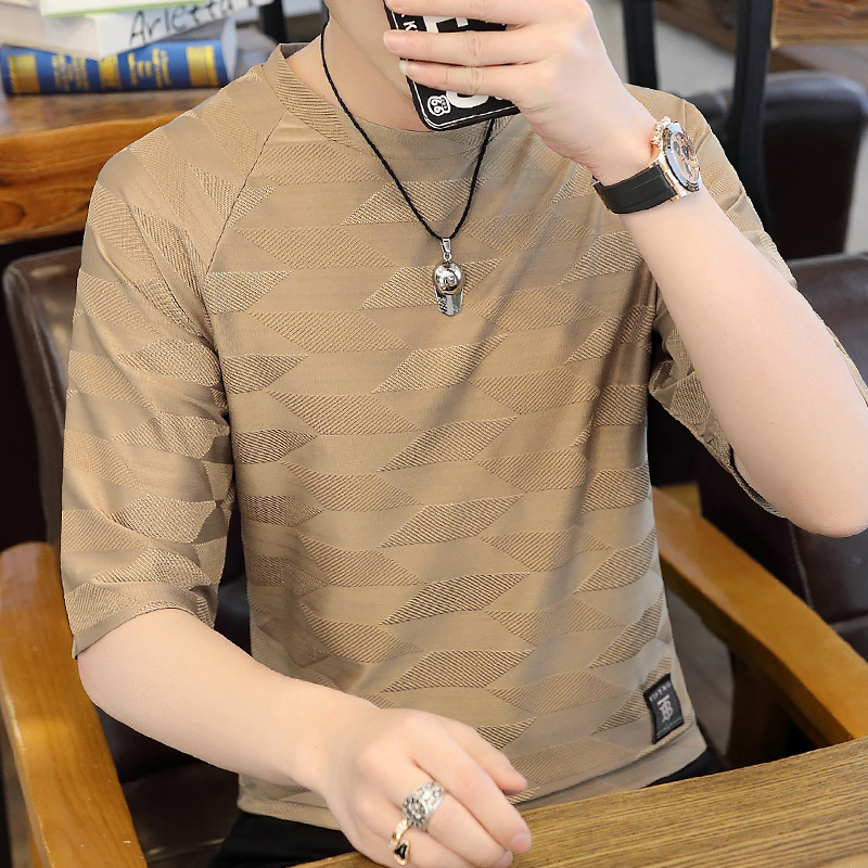 t恤版型,穿着舒适自在。圆领设计,尽显绅士魅力。七分袖设计,清爽透气。