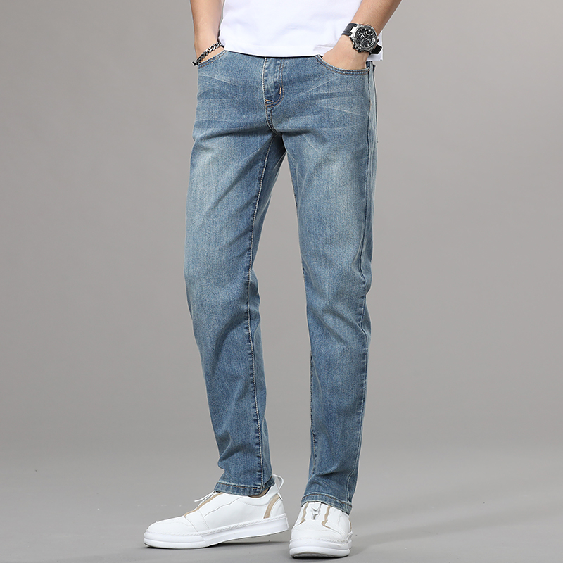 高腰设计,拉长身材比例。高腰牛仔裤,显瘦显腿长。直筒裤型,修饰腿部线条。