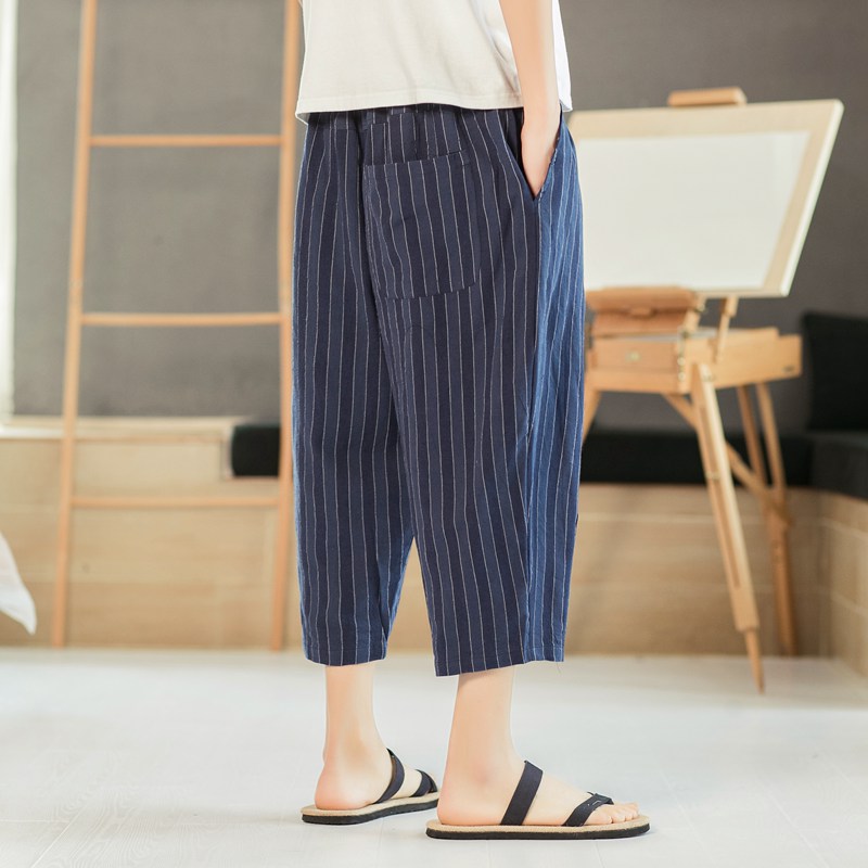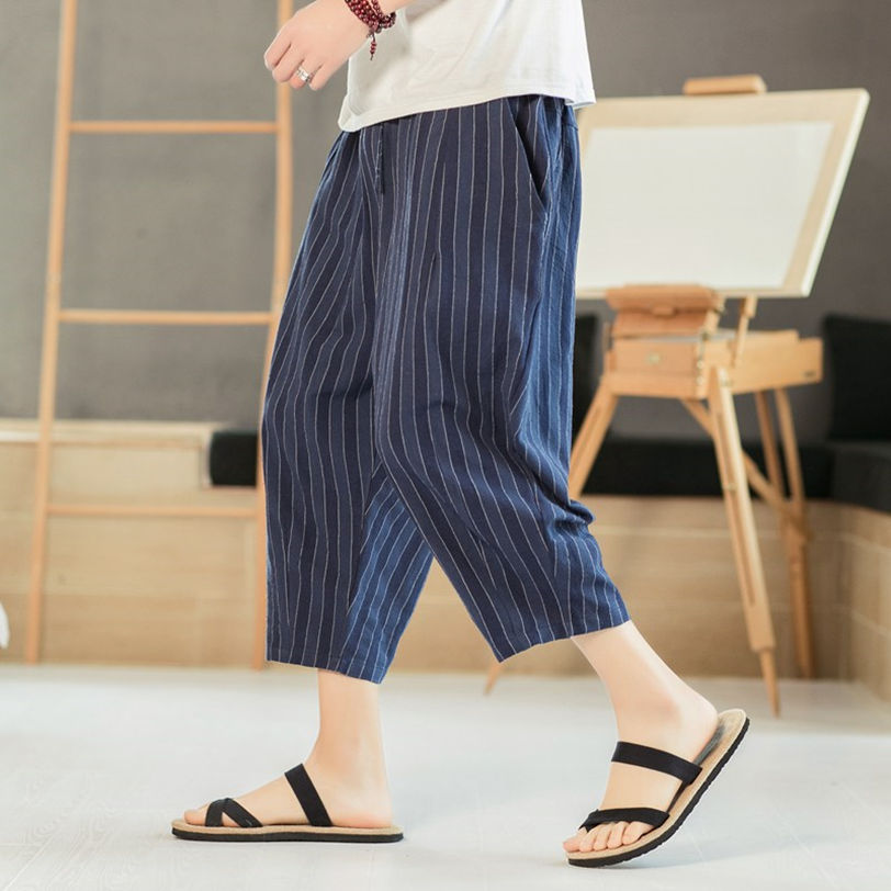 精选透气的亚麻布面料,上身舒适亲肤。宽松的裤长遮肉,舒适休闲。经典斜插袋设计,方便放置一些日常物品。