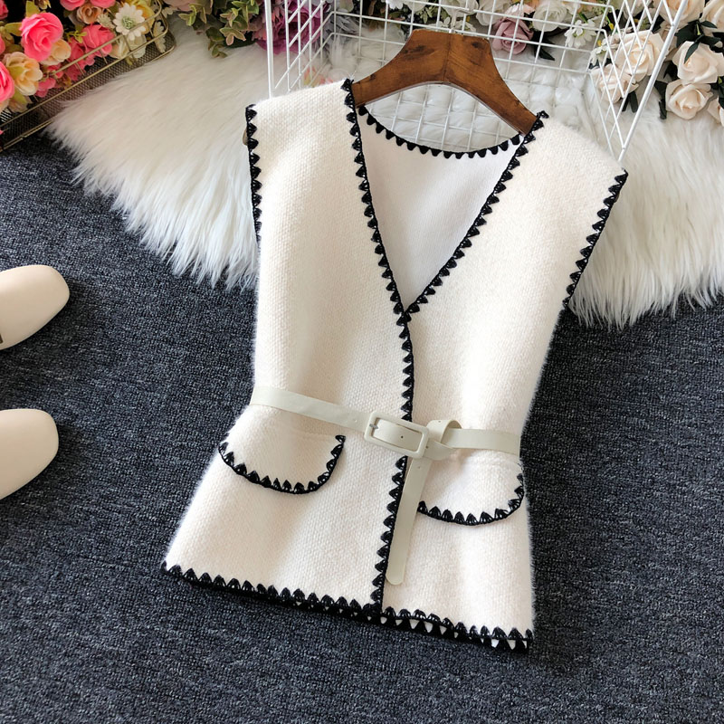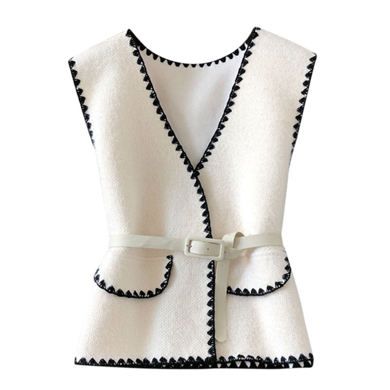 纯色马甲设计,彰显优雅气质,背心设计,穿着舒适自在,翻领设计,修饰脖颈线条,高腰版型,拉长身材比例。