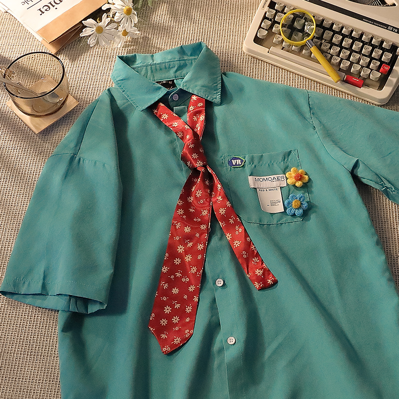 落肩设计,修饰身材曲线。印花设计,时尚感十足。日系复古风格,简约百搭。