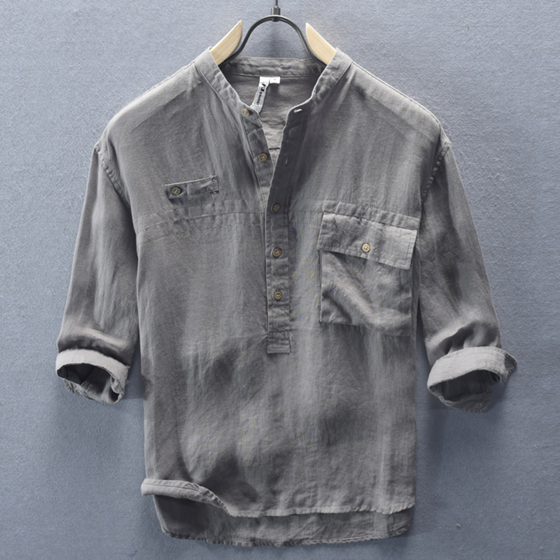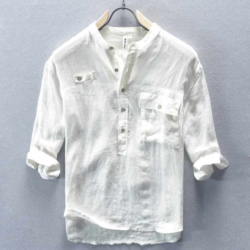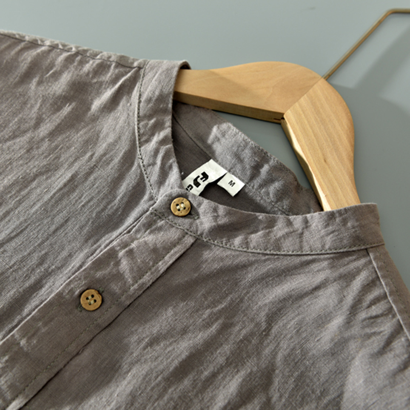 文艺范的一款t恤,立领的设计,凸显了纤细的天鹅颈,舒适的短袖,穿起来舒适自在,个性的印花点缀,增添了几分文艺气息。