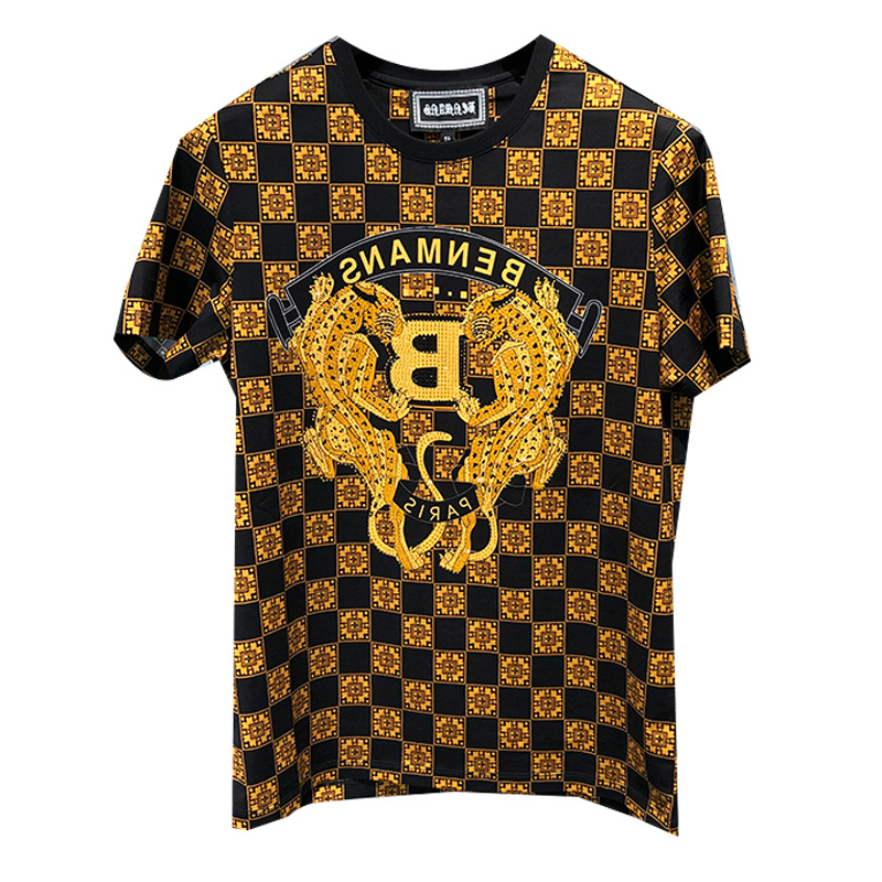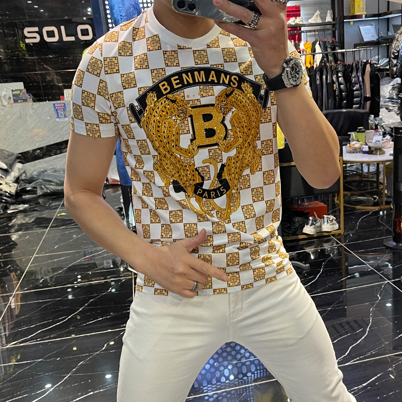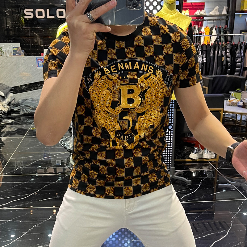 这是一款嘻哈街头风的T恤,让你的穿搭更加出众,经典的烫钻设计。