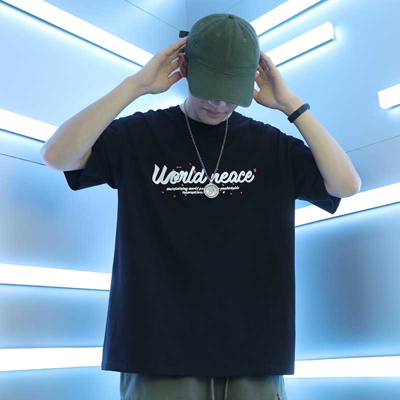 这款t恤是简约的风格,宽松的版型,时尚百搭,胸前的字母印花,很有个性,搭配牛仔裤或者短裤都很好看。