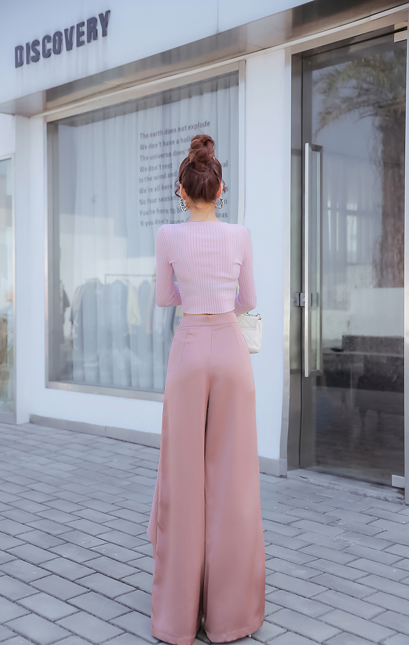 高腰的设计,拉长腿部线条,显瘦效果很好,高腰的版型,很显高挑,修身的剪裁,修饰腿部曲线,上身很有范。