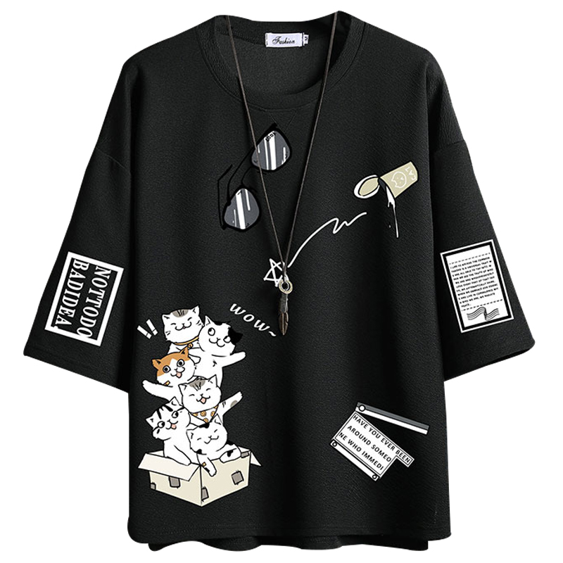 这款t恤是简约的风格,宽松的版型,时尚百搭,胸前的字母印花,很有个性,搭配牛仔裤或者短裤都很好看。