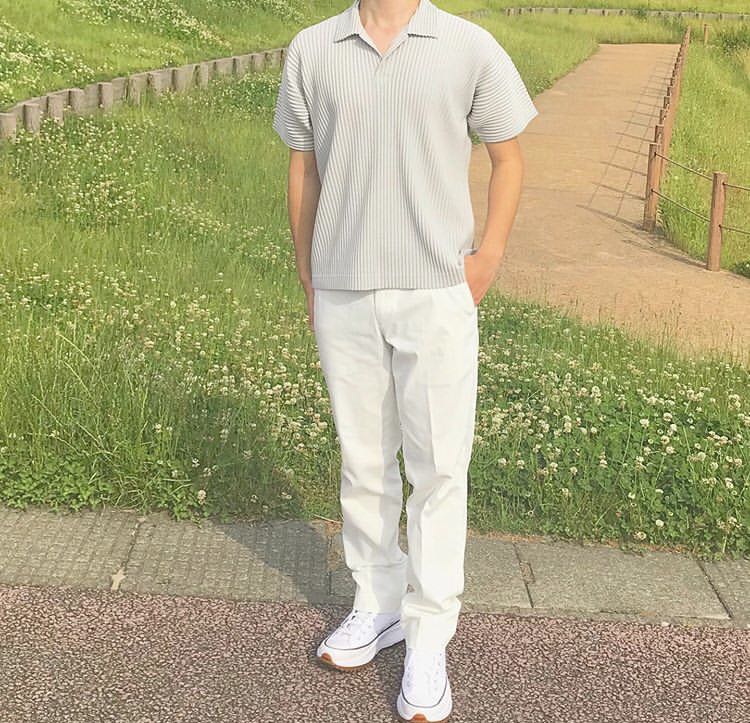 简约的高腰设计,搭配上修身的版型,上身显瘦又显高。