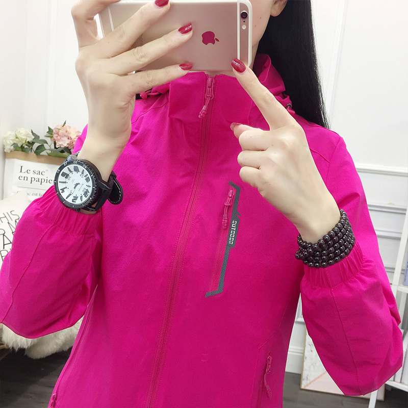 冲锋衣选用了休闲的翻领设计,搭配连帽的领口设计,上身更舒适防风保暖,个性的印花,尽显品牌的特色。