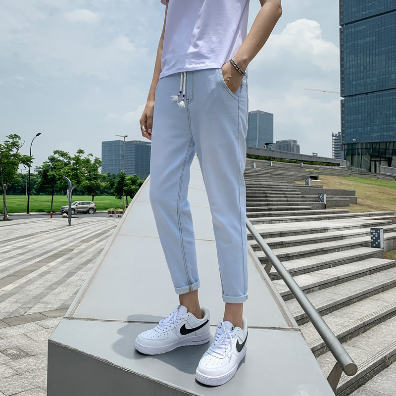 高腰设计,拉长身材比例。高腰牛仔裤,显瘦显腿长。直筒裤型,修饰腿部线条。