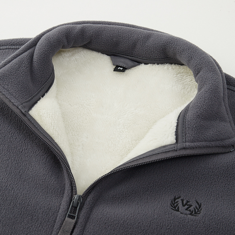 卫衣版型,上身舒适自在,立领夹克,穿脱更加方便,摇粒绒面料,舒适又保暖,经典连帽设计,学院风十足。