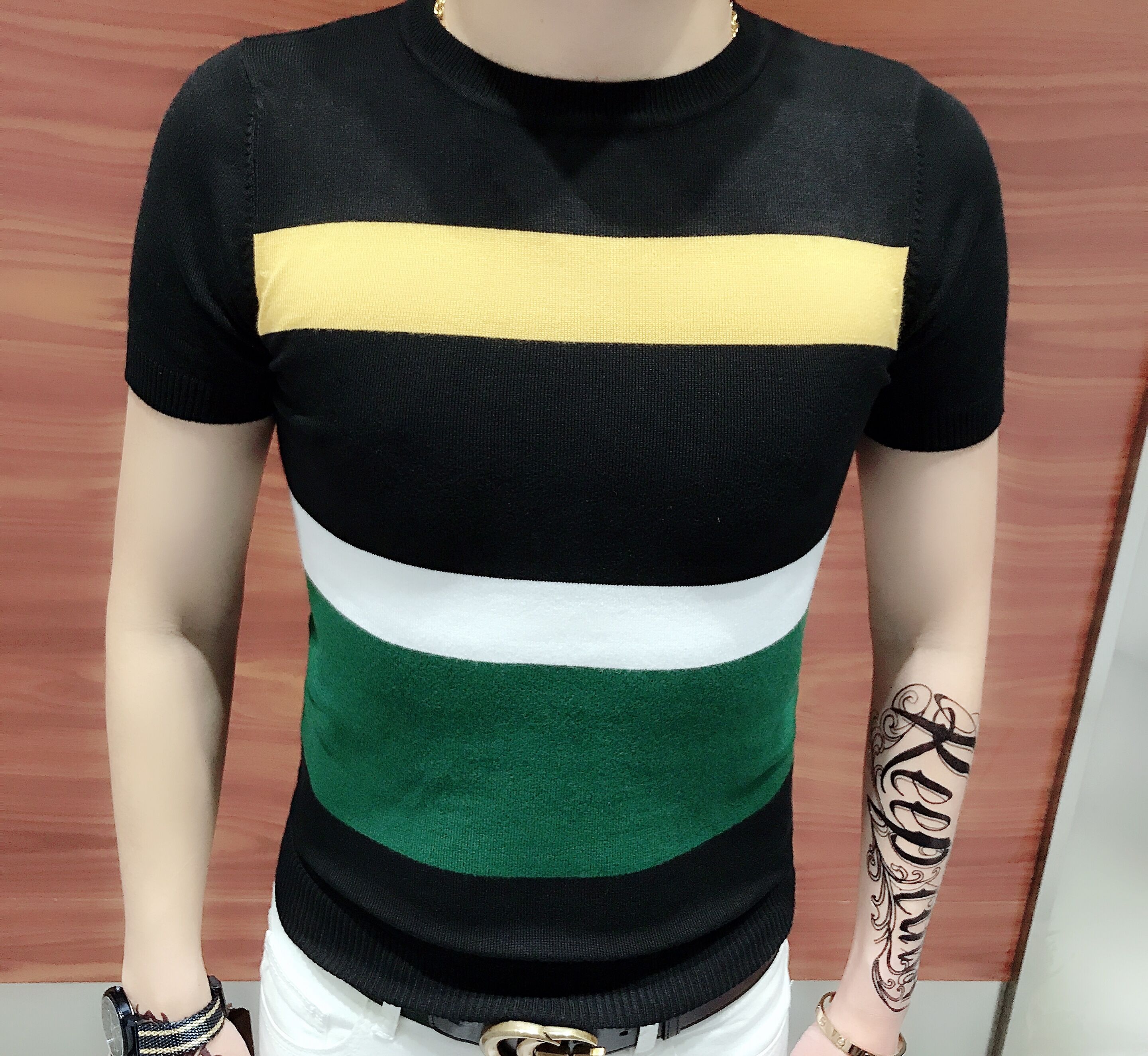 抽象印花,充满创新感,字母印花设计,个性独特,短袖设计,修饰手臂线条,精致做工,彰显高端品质。